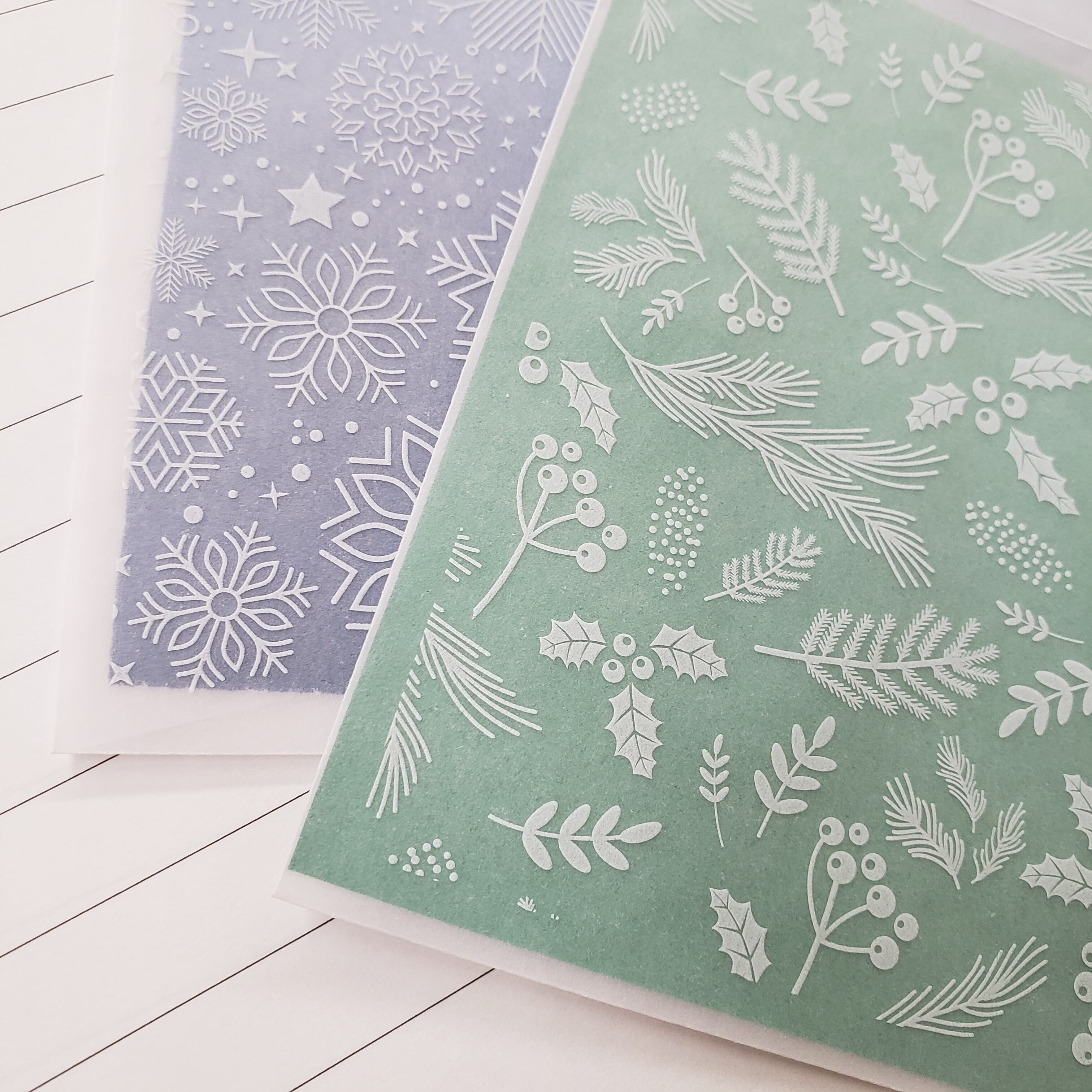 雪の結晶やクリスマスをモチーフにした繊細な絵柄が冬のイメージにピッタリ